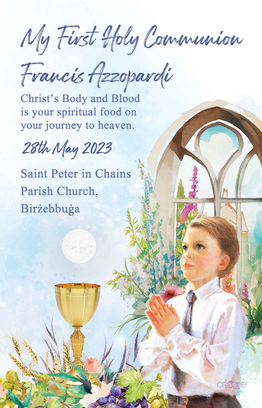 Ġbir: Holy Communion Commemorative Card (Santi)